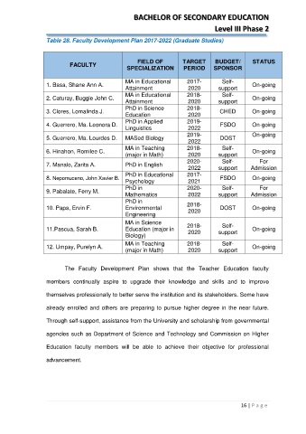 Table 28. Faculty Development Plan 2017-2022 (Graduate Studies)