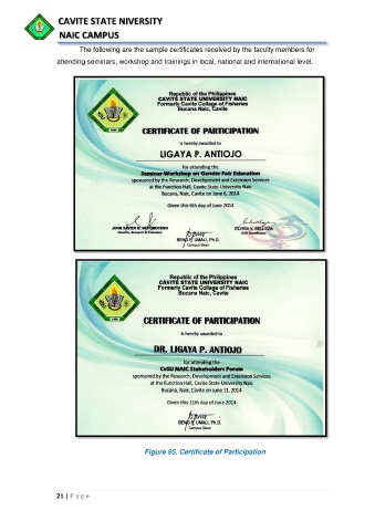 The following are the sample certificates received by the faculty members for
