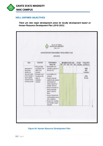 CAVITE STATE NIVERSITY NAIC CAMPUS WELL-DEFINED OBJECTIVES There are nine major development areas for faculty development based on Human Resource Development Plan (2018-2022) Figure 84. Human Resource Development Plan 3 | P a g e