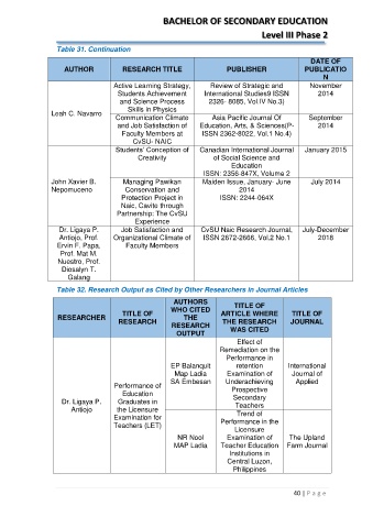 Table 32. Research Output as Cited by Other Researchers in Journal Articles
