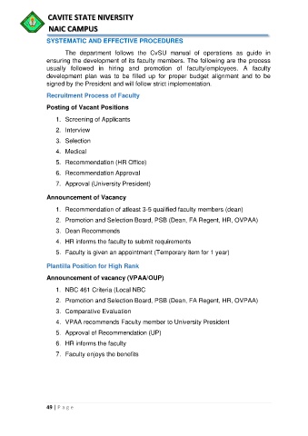 The department follows the CvSU manual of operations as guide in