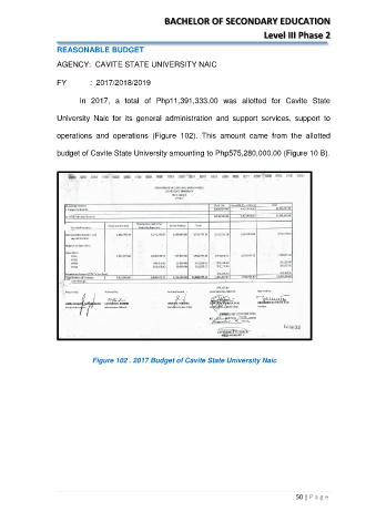 Figure 102 . 2017 Budget of Cavite State University Naic