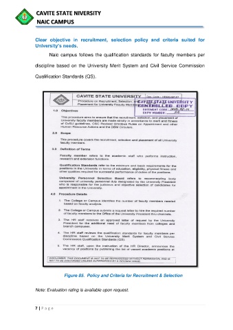 Figure 85. Policy and Criteria for Recruitment & Selection