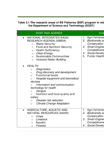 Table 3.1 The research areas of BS Fisheries (BSF) program in relation to the research agenda of Cavite State University (CvSU) and