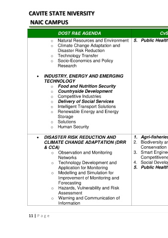 DOST R&E AGENDA CvSU AGENDA RESEARCH AREAS OF BSF