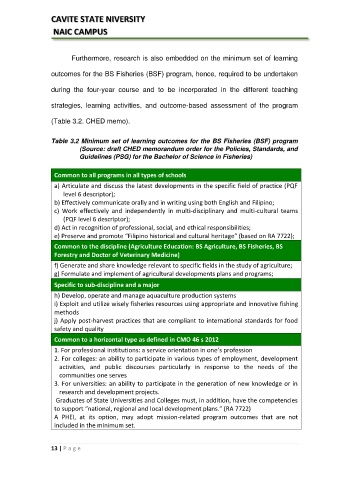 Table 3.2 Minimum set of learning outcomes for the BS Fisheries (BSF) program