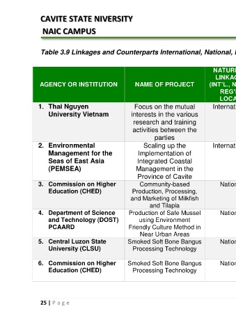 Table 3.9 Linkages and Counterparts International, National, Regional, and Local