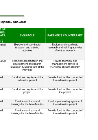 AGENCY OR INSTITUTION NAME OF PROJECT (INT’L., NAT’L., CvSU ROLE PARTNER’S COUNTERPART
