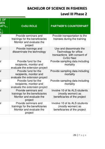 AGENCY OR INSTITUTION NAME OF PROJECT (INT’L., NAT’L., CvSU ROLE PARTNER’S COUNTERPART