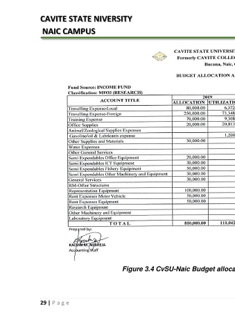 CAVITE STATE NIVERSITY NAIC CAMPUS Figure 3.4 CvSU-Naic Budget allocation and utilization for Research 29 | P a g e
