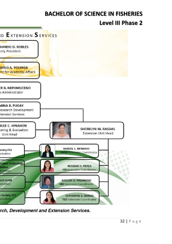 BACHELOR OF SCIENCE IN FISHERIES Level III Phase 2 Figure 3.5 Organization chart of the Research, Development and Extension Services. 32 | P a g e