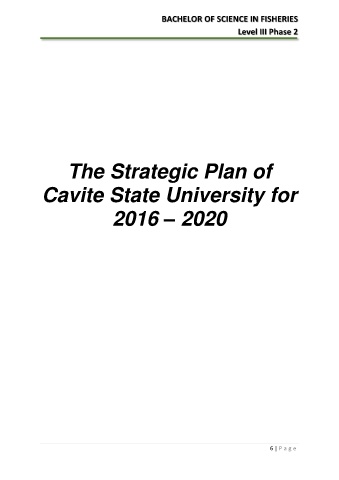 BACHELOR OF SCIENCE IN FISHERIES Level III Phase 2 The Strategic Plan of Cavite State University for 2016 – 2020 6 | P a g e
